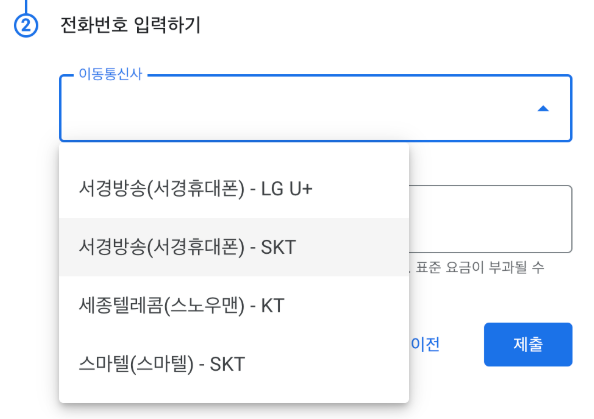 ' 아무 통신사나 선택해서 시도해 보시면 돼요 '